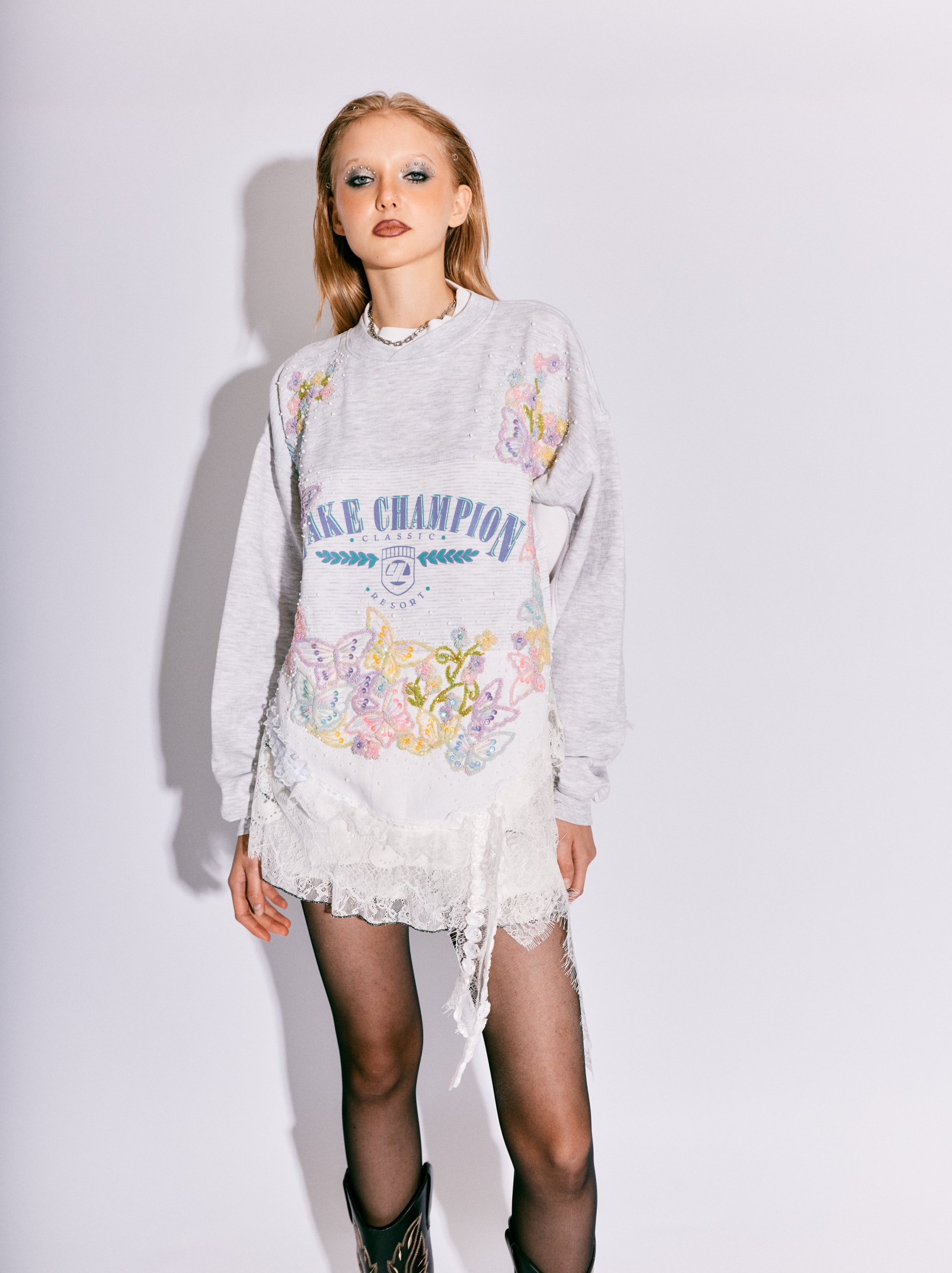 Where softness meets strength — the Pastel Dream Lace Sweater captures the spirit of gentle rebellion. Hand-embroidered pastel florals bloom across a canvas of vintage grey, blending delicate lace and dreamy hues into a symphony of romantic chaos. It’s a wearable daydream for those who dare to be tender and bold all at once.