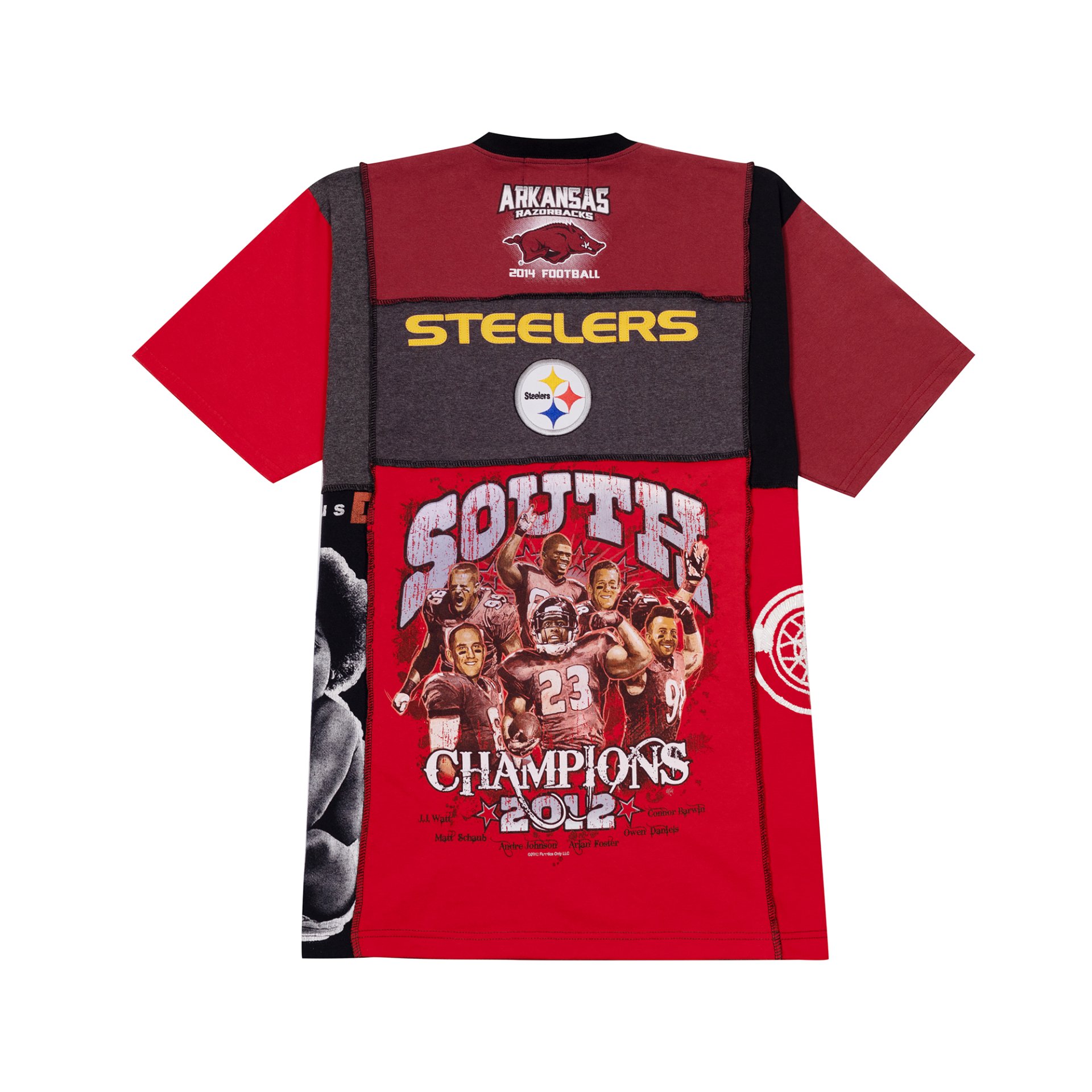 Colour-Block Tee Made from 4–5 hand-selected vintage tees, each panel brings its own past—different colours, prints, and moods—cut together into one new story. Visible patchwork seams keep the character alive; no two pieces are the same. Street-ready with an oversized, unisex fit and easy drape—built for everyday wear, built to stand out.