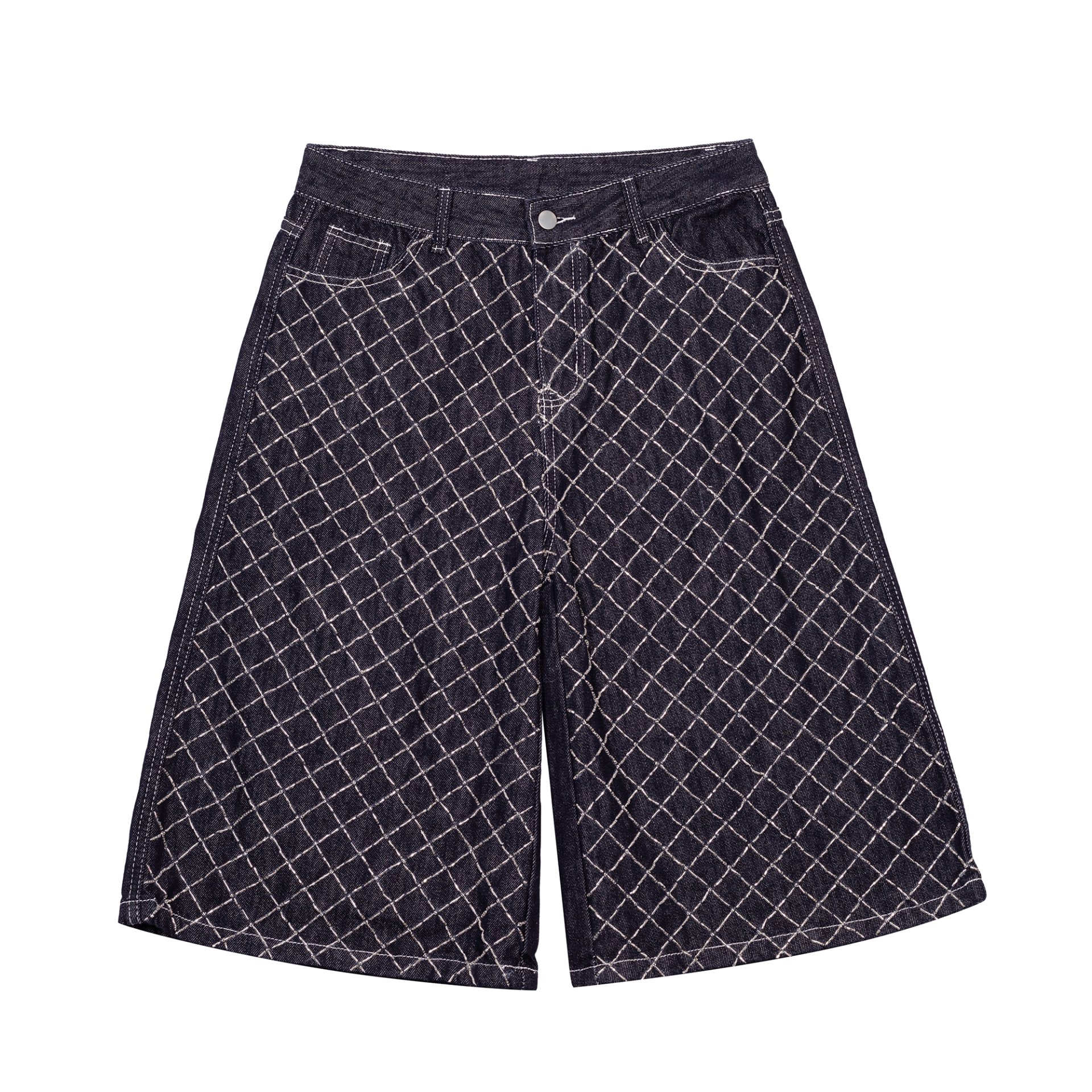 Capri-length Pixel Pants with hand embroidery all over. Oversized and baggy for a cool, relaxed look, this timeless style is easy to mix and match with anything in your wardrobe.